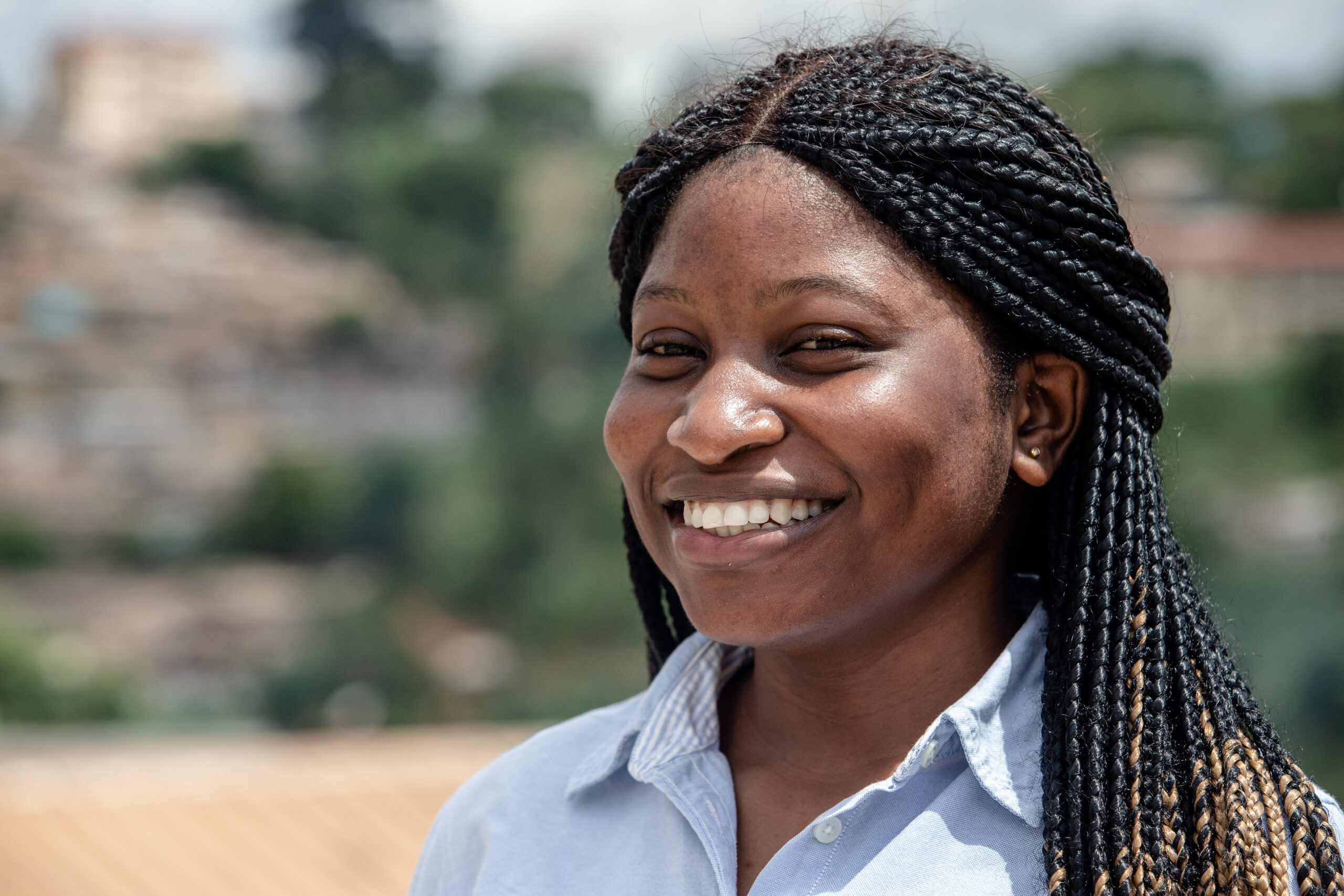 Sonia Zambou, 28, came from Dschang to study at TechWomen Factory. Enrolled in Web Development, she wants to build a platform focused on child safety and sports classes in Yaoundé. She dreams of going to Canada to learn different skills to help her community back home.